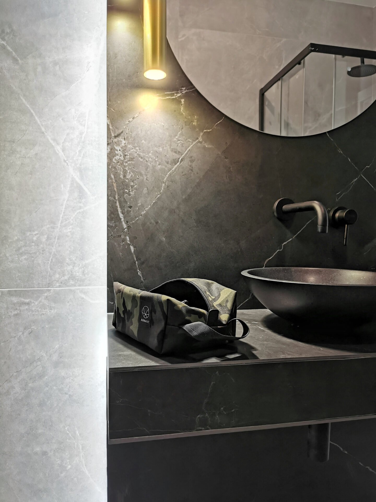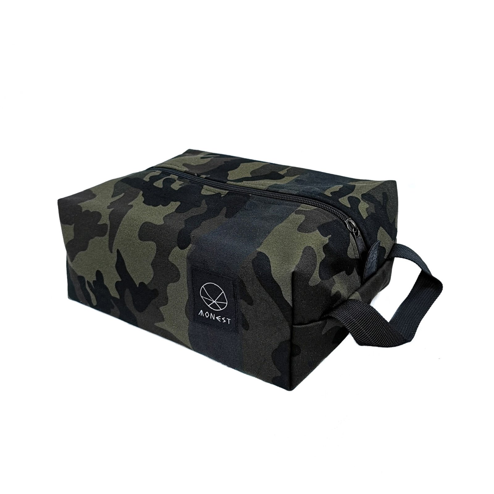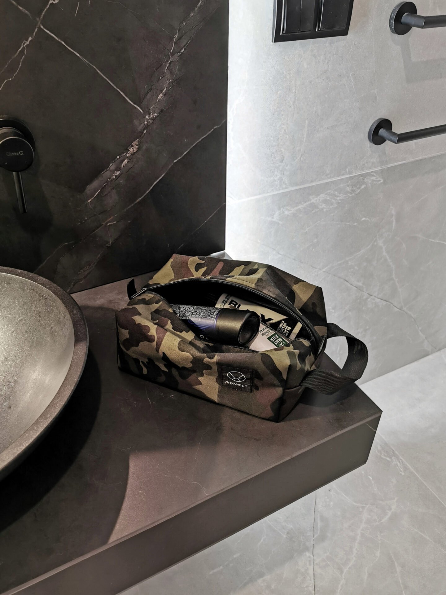 Duża męska kosmetyczka moro. Uszyta z bawełny technicznej przeznaczonej głównie dla służb wojskowych. Charakteryzuje się bardzo wysoką odpornością na uszkodzenia mechaniczne. Spokojnie pomieści najpotrzebniejsze w podróży kosmetyki.