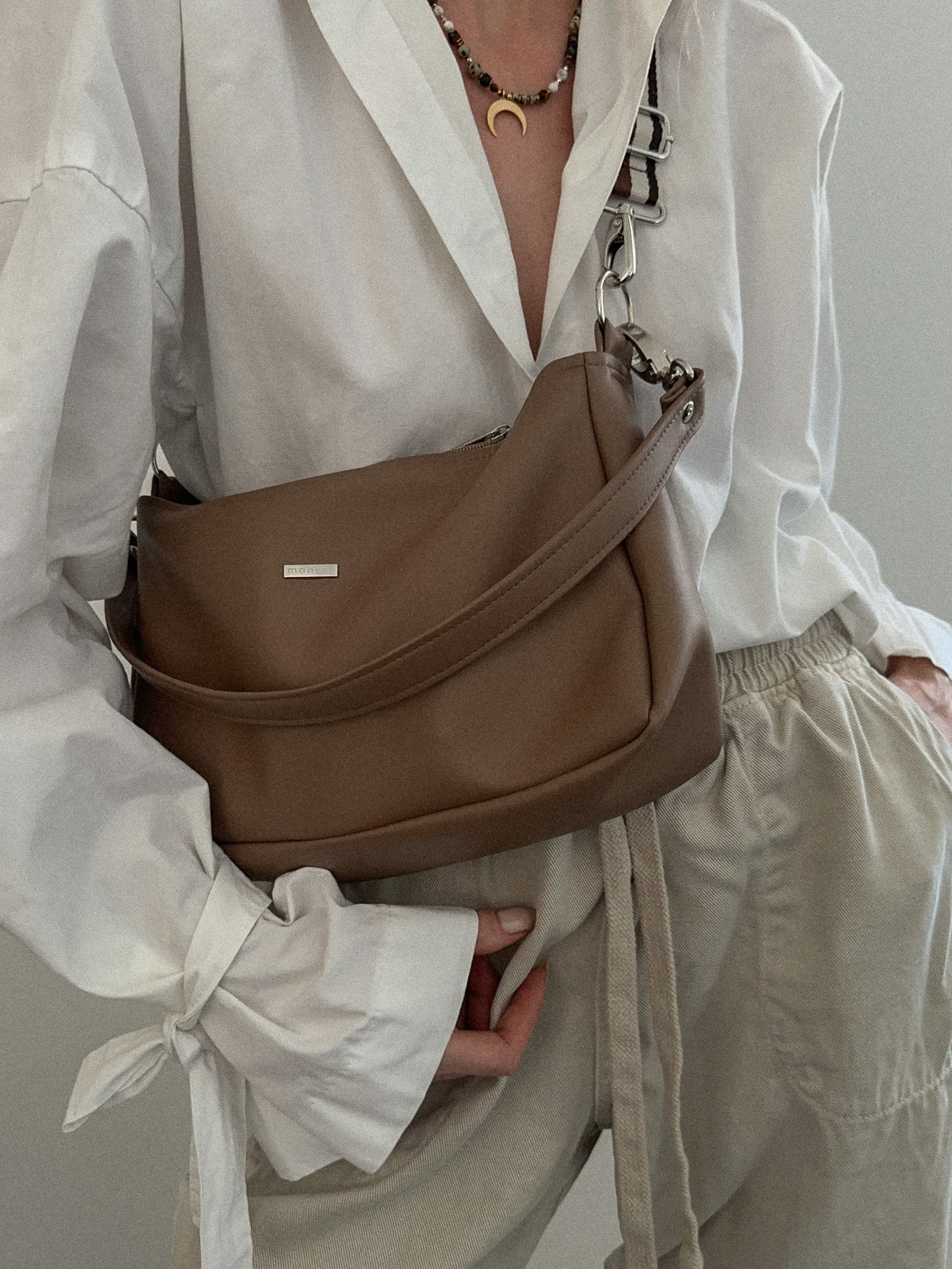 Kompaktowa, ale pojemna. Bagu to torebka stworzona z myślą o codziennym rytmie miasta – jako alternatywa dla nerki. Lekka, wygodna i zawsze pod ręką. Jej podłużna forma nadaje charakteru, a sprytne wnętrze sprawia, że wszystko ma swoje miejsce. Dzięki odpinanym paskom możesz dostosować sposób noszenia według potrzeb.