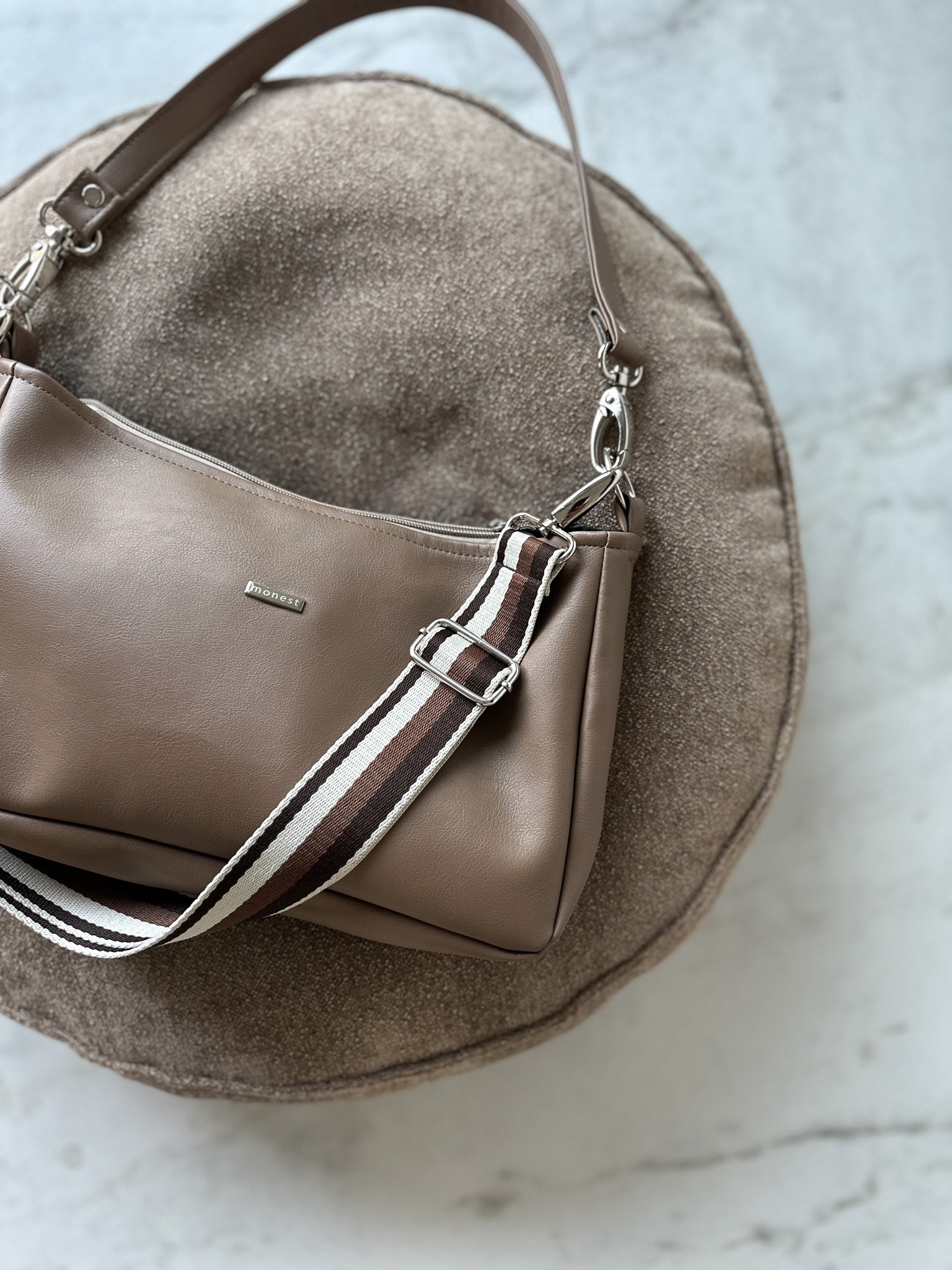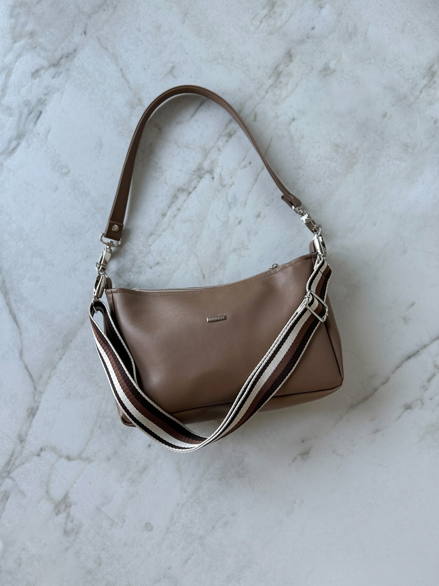 • 2 odpinane paski: regulowany crossbody + krótki na ramię