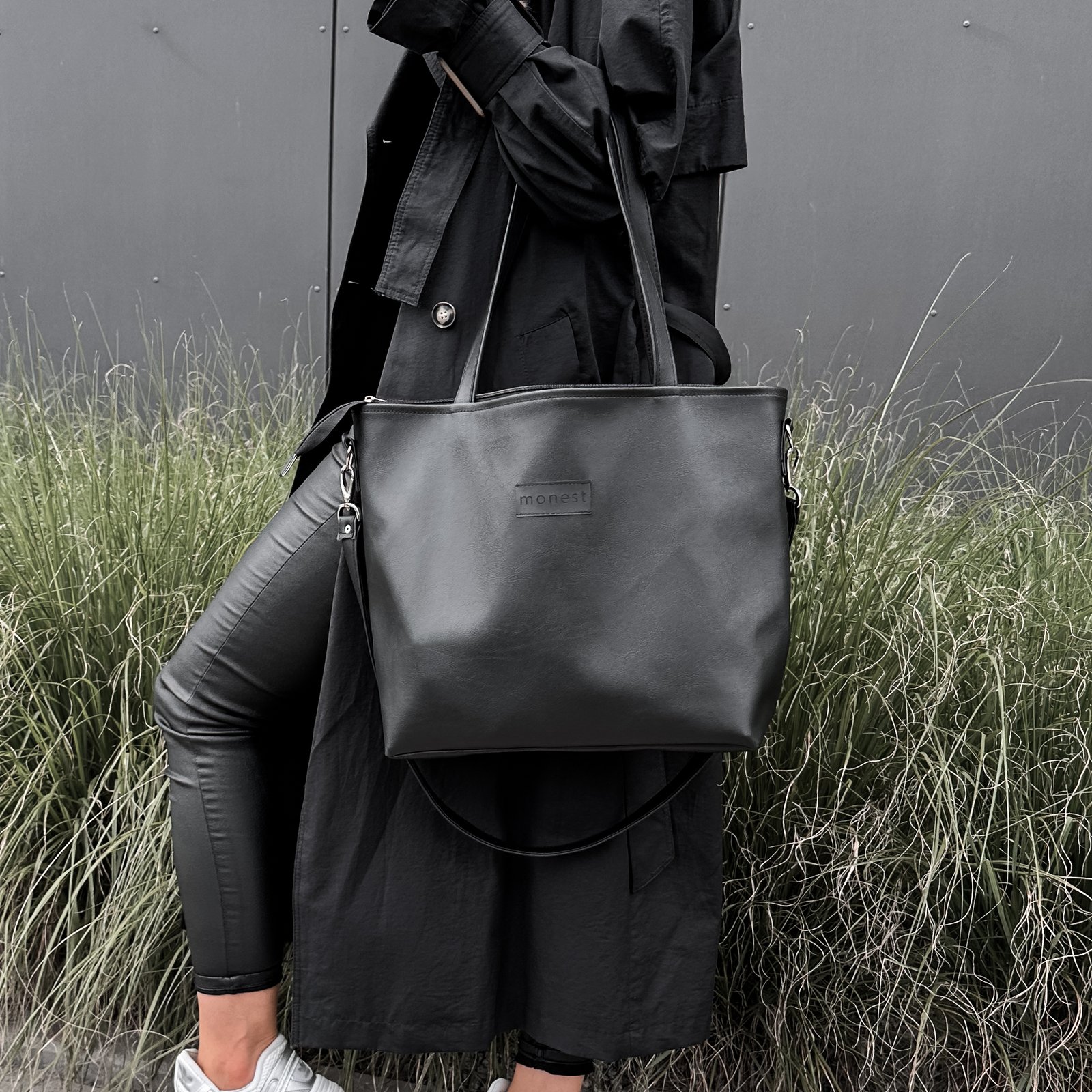 Minimalistyczna i pojemna torba typu shopper z czarnej eko skóry, która będzie pasować do wszystkich stylizacji.