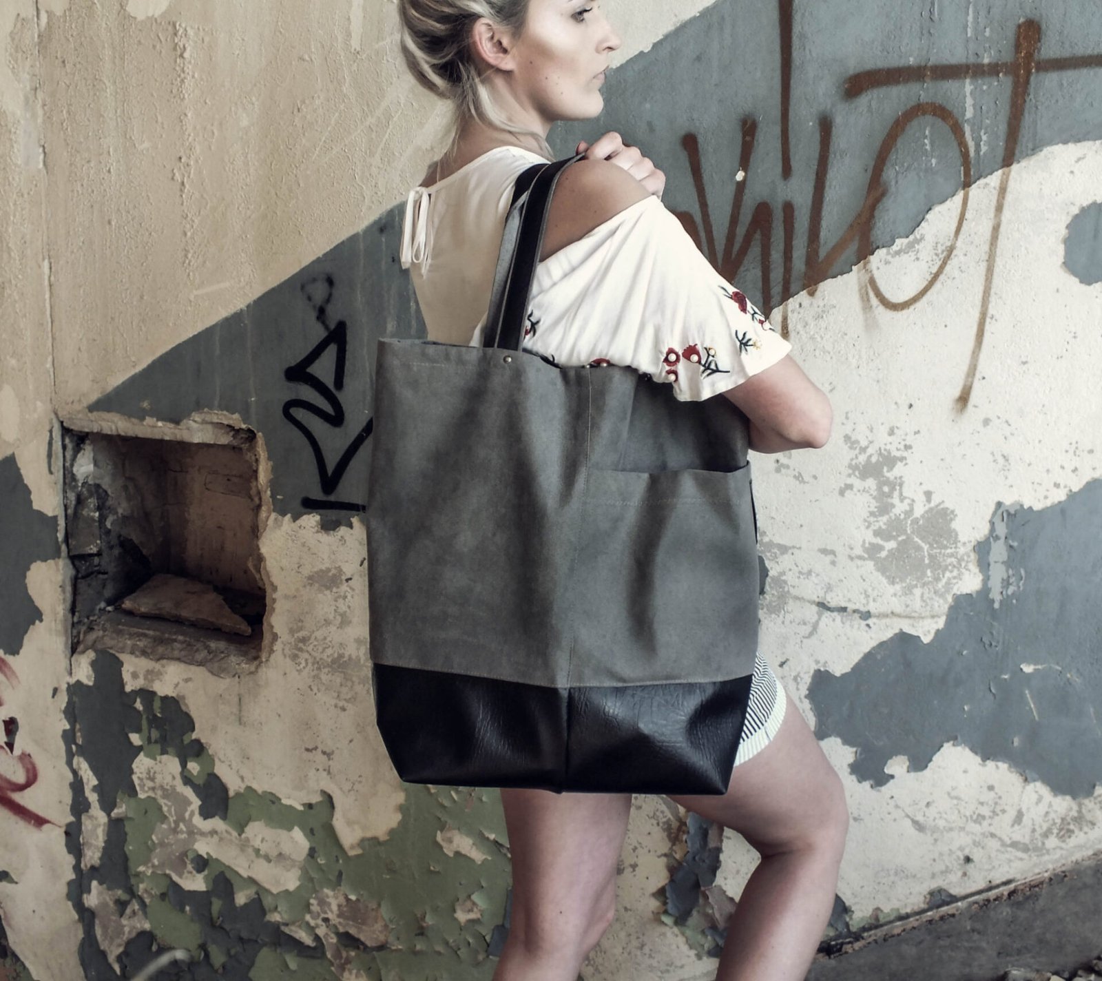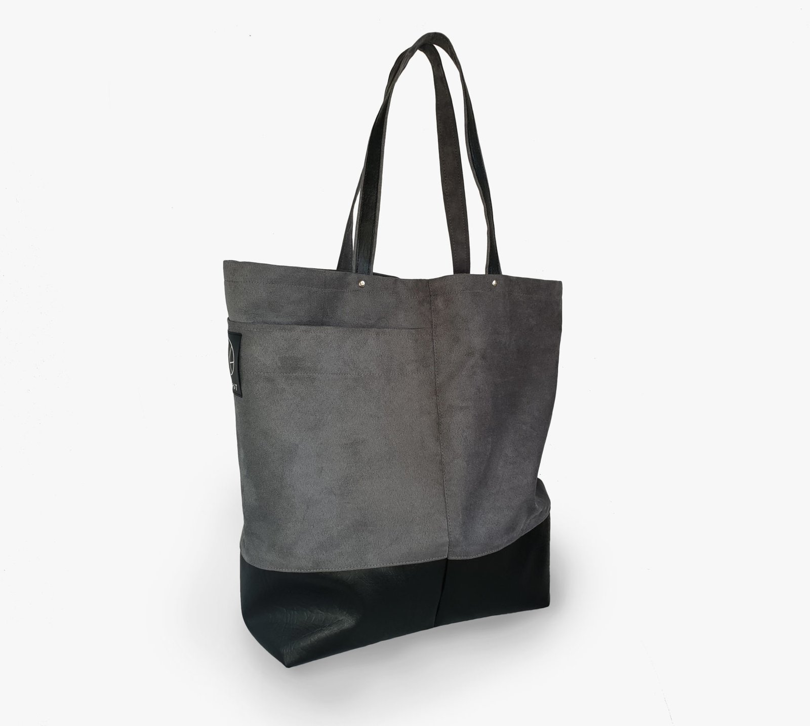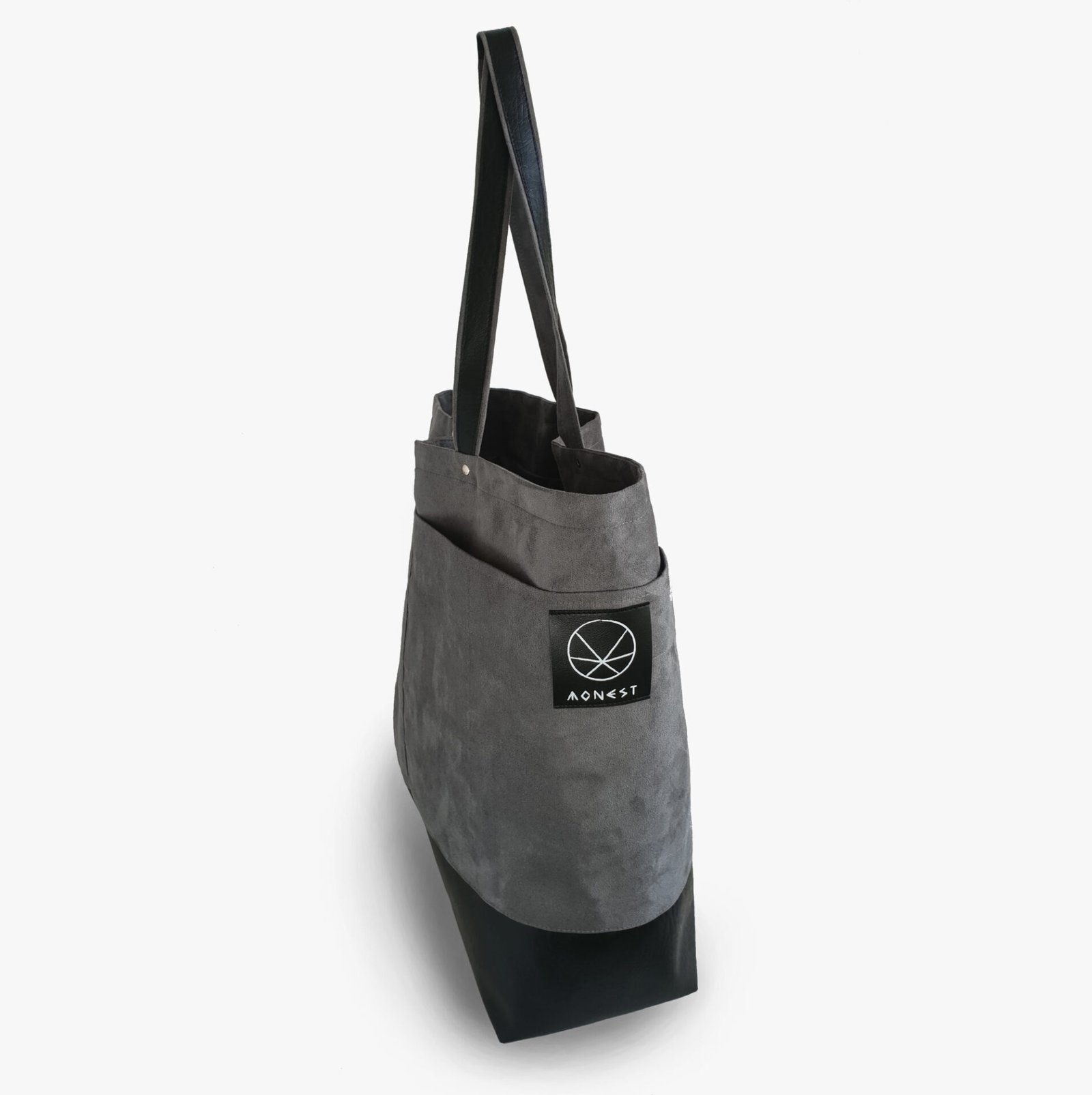 Duża torba na ramię w kolorze szarym, uszyta z eko zamszu. Dolna część wykończona eko skórą. W bocznym panelu spora podręczna kieszeń. Torba świetnie sprawdzi się podczas zakupów, do szkoły i do pracy. Bardzo pojemna. Minimalistyczny design i neutralny kolor sprawia, że pasuje do każdej codziennej stylizacji. Dno torby wykończone wkładem usztywniającym, który można wyciągać.